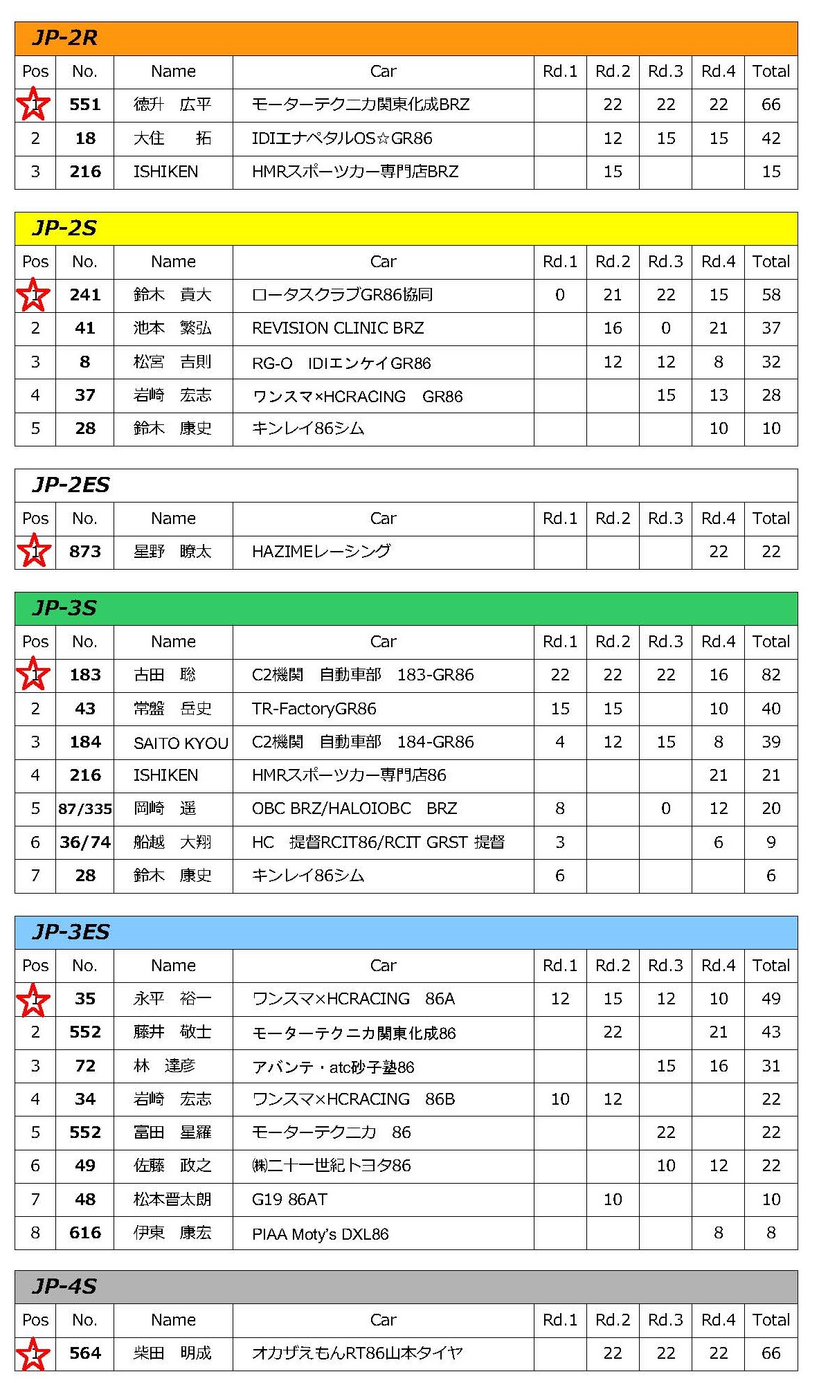 - ・シリーズポイントは当該大会に完走したドライバーに与えられる。